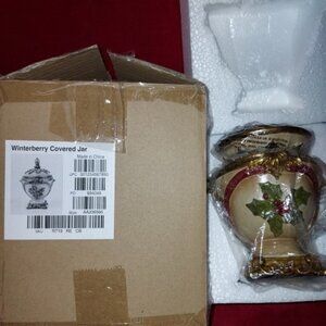 TOUCH OF CLASS RETIRED CHRISTMAS WINTERBERRY COVERED JAR/BOWL NWT