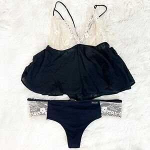 TOUCHE ANTHROPOLOGIE BLACK CREAM LACE AVIEL CAMI AND BRIEFS WOMENS SZ SMALL