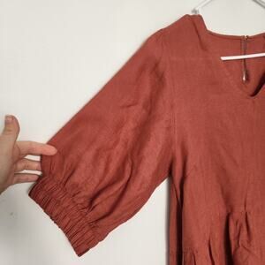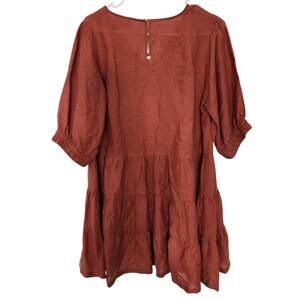 TOUCHE Linen Tiered Mini Dress S Cottagecore Beach Peasant Farmhouse Retro.