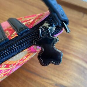 TOUS Shoulder Purse Bag Multicolored Pink Orange Paisley Teddy Nylon and Leather