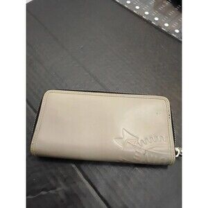 The TOUS Toupe Zip Around Design Wallet features a signature bear pattern in beige leather. This M-sized wallet has a zippered closure and includes credit card slots and double zippered compartments for added functionality. With a stylish zip-around design and logo accents, this wallet is a fashionable accessory for women looking for a chic and practical storage solution for their essentials.