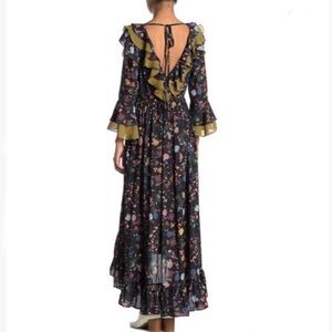 TOV Floral Houndstooth Ruffle High/Low Dress