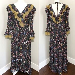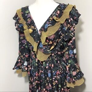 Gorgeous TOV Floral Houndstooth Ruffle High/Low Hem Dress in European size 40- MEDIUM.