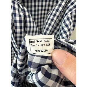 TOV | Navy Gingham Tie Front Bow Blouse Dramatic Balloon Sleeves | Size 38