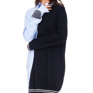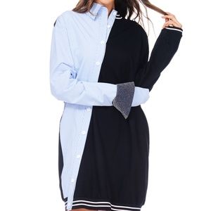 Asymmetrical dress that is half night shirt, and half varsity style extended top.