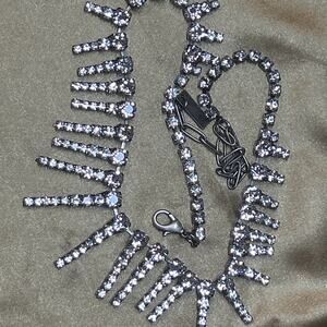 TOVA Rydell Necklace Antique Silver Statement Holiday Sparkle Runway Glam Drop