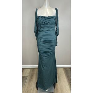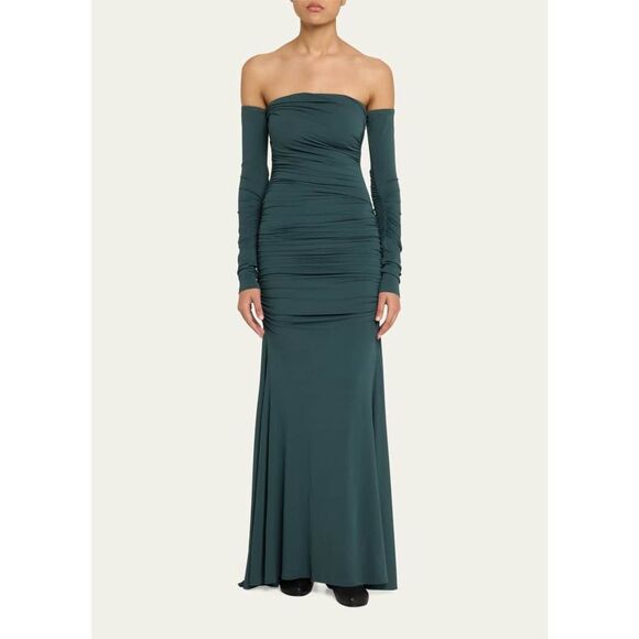 TOVE Ina Gathered Off-The-Shoulder Dress in Teal Size FR40/US8 $1430
