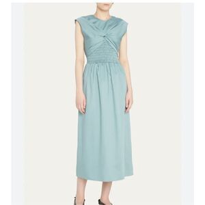 TOVE's cap-sleeve Iona midi-dress is elevated by a twisted front bodice and smocked waist.