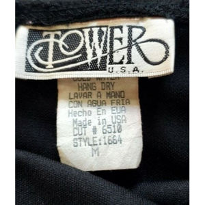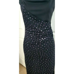 TOWER Ladies Evening Black Stretch Purple Glitter Layered Mesh Jumpsuit Sz M.
