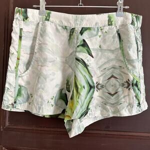 TOWNSEN | Silk Watercolor Grasshopper Green Shorts | Size Large
