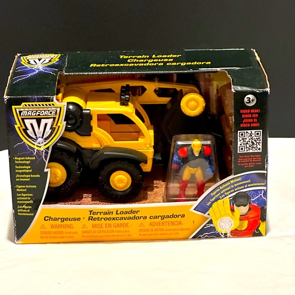 Introducing the MAGFORCE TERRAIN LOADER toy vehicle, perfect for boys and girls aged 3 and up! This 7" construction vehicle boasts advanced magnetic technology and comes with accompanying figures for added playtime fun. The bright yellow color and realistic design make it a great addition to any toy collection.