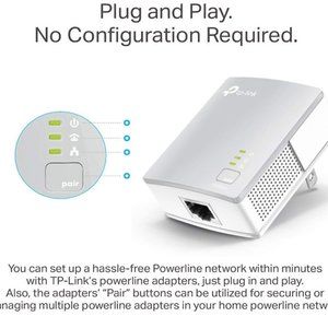 Plug & Play: No new wires & no configuration required; Step 1: connect 1 adapter to your router. Step 2: plug in another Powerline adapter wherever you need wired internet service