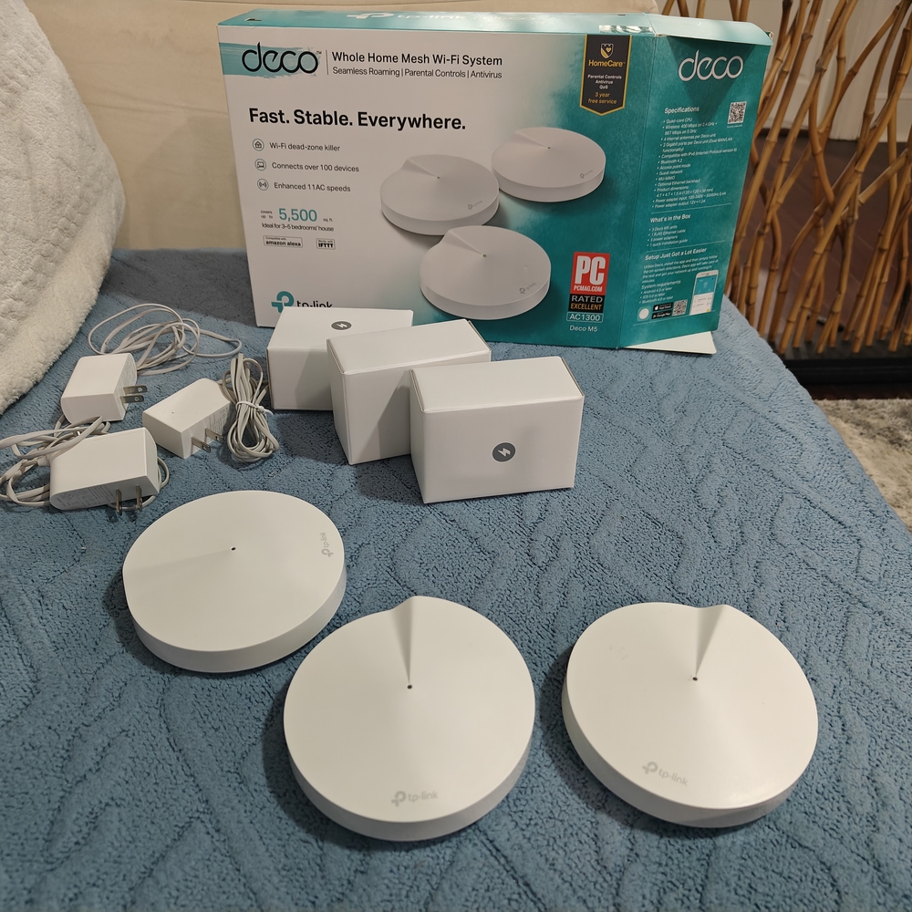 The TP-Link Wireless Router Mesh System in white offers a seamless networking experience with its sleek, modern design. This system ensures robust and reliable internet coverage throughout your home, making it an ideal choice for uninterrupted connectivity. Its minimalist aesthetic blends effortlessly with any decor, providing both functionality and style.