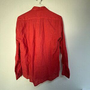 TP'S Mens Linen Red Long Sleeve Button-Down Shirt Medium Eco-Wash Natural Fit