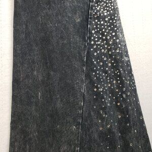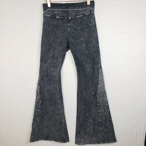 T-Party Yoga Pants Rhinestone Embellished Bell Bottom Flare Y2K Foldover Waist M