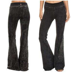 T-Party Yoga Pants Rhinestone Embellished Bejeweled Bling Bell Bottom Flare Fold-over Waist
