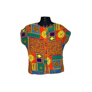 TR Bentley Baroque Geometric Blouse (Size: Large, Color: Multi/Red/Gold)