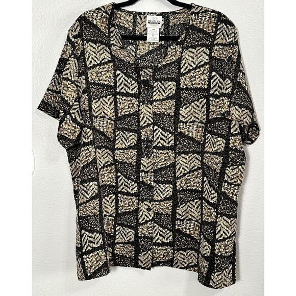 TR Bentley Plus Women’s Brown Black Beige Short Sleeve Button Up Top Size 18W