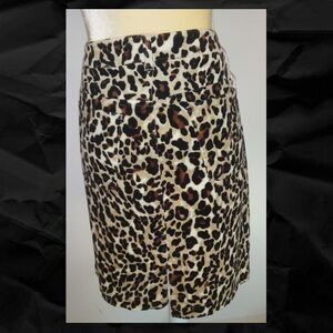 Jones of New York Leopard print stretch skirt - EUC - Like new! Jean skirt styling. Adds an edge to the office or is perfect for a night out!. Five pocket style with a kick pleat as shown in photo. Button and zip fly. Super sexy and yet the colors go with almost everything!
