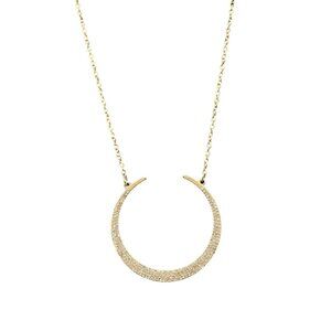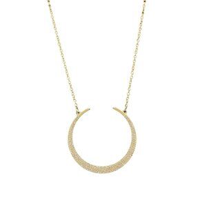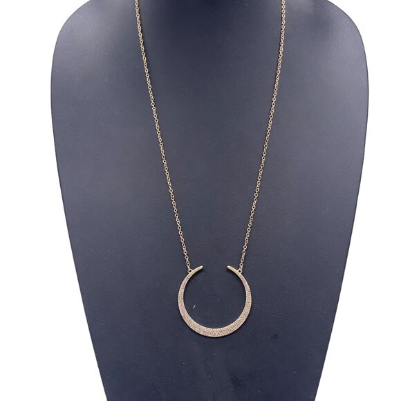 Pave Rhinestone Crescent Half Moon Pendant Chain Necklace