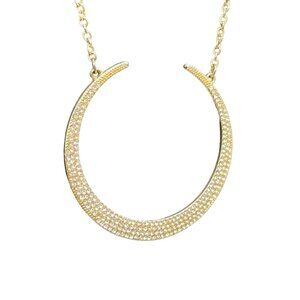 T&R Pave Rhinestone Crescent Half Moon Pendant Chain Necklace Gold Tone Classic