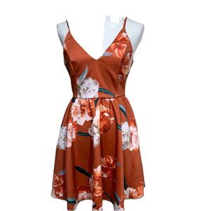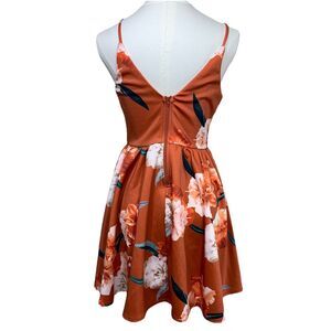TRAC Rust Orange Floral Spaghetti Strap Fit & Flare Mini Dress Size Small