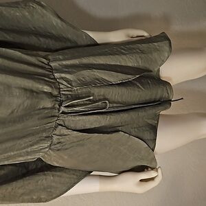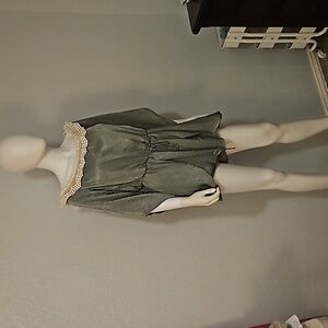 TRAC Sage Satin Crochet Lace Off Shoulder Tie Waist Fairycore Shorts Romper