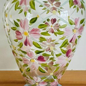 TRACEY PORTER Pink & Blue Hand Painted Vase EUC