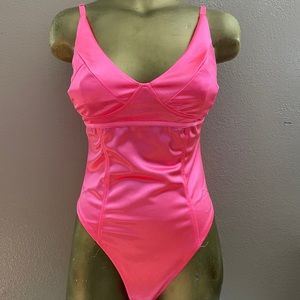 TRACY ANDERSON Chic NWT Dayglo NEON Flouro HOT PINK Festival BODYSUIT Medium