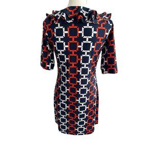 TRACY NEGOSHIAN Orange Navy Blue Ruffle V Neck Dress Size XS