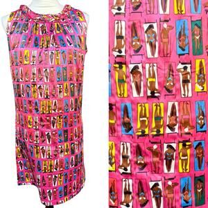TRACY NEGOSHIAN Pink Sunbathers Braided Neckline Shift Dress - Small