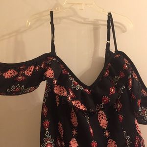 Make me an offer!Cute off the shoulder! Never worn! Has pockets!!! Great for summer and spring! Has frills of the front neckline!