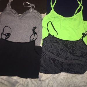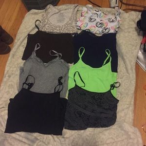 Make an offer!Huge tank top bundle with sizes xs-s! You get a total of 8 tank tops! Black patterned, black, Gray, green, brown, navy blue, animal print and peace signs. Some adjustable straps and some built in bra. One has padding, great deal!