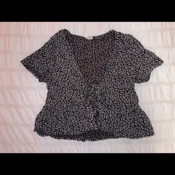 Super cute top. Love this top it’s just slightly too small on me. Black tie front. Brandy Melville. One size fits all big fits size S/M.