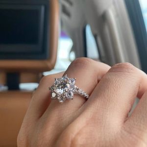 Moissanite Luxury Sun Flower Ring 2.0 Carat Diamond Lotus Ring Women's Fancy Wedding Rings Jewelry Include Box