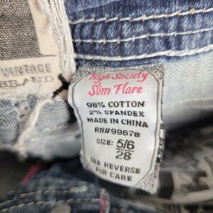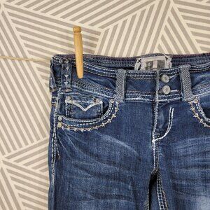 TRADEMARK H Dark Wash Jeans Embroidered Pockets Size 5/6 30" Slim Flare Women's