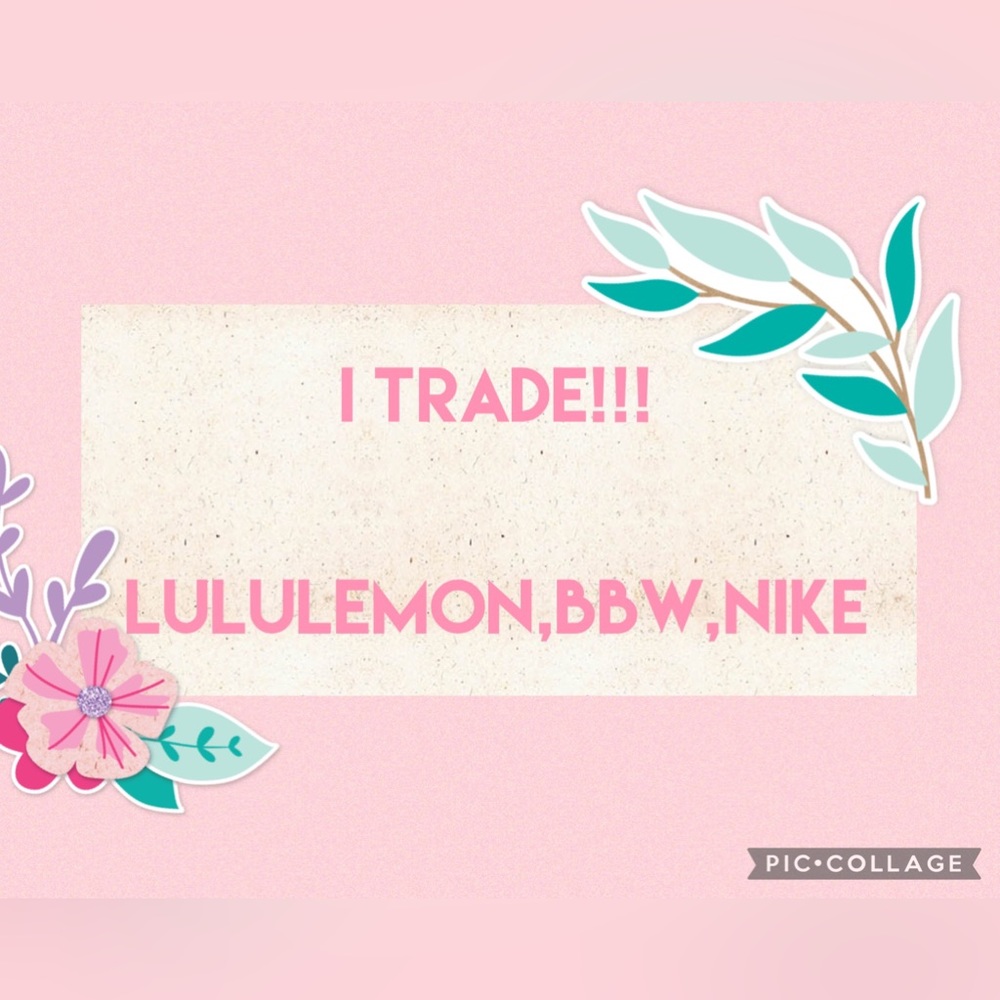 i have lululemon, nike, and bath and body works please feel free to offer or comment on any of my listing i want to trade for lululemon, nike or bath and body works!