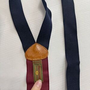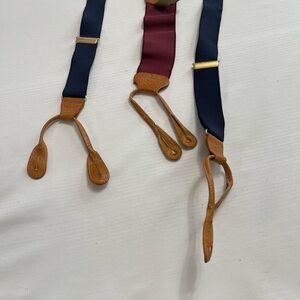 TRAFALGAR Navy Blue VTG Leather Tabs Suspenders Braces