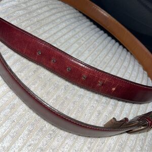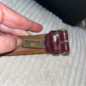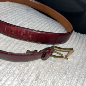 Stylish leather belt in brown and burgundy. Features a gold buckle for a classic look. TRAFALGAR men’s Brown Leather Belt with Gold Buckle 38 xl
