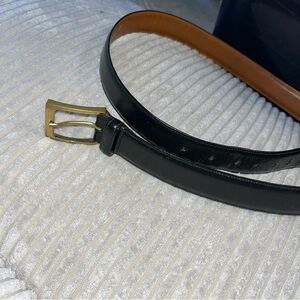 Elevate your style with this classic black leather belt. Perfect for any occasion, this accessory adds a touch of sophistication to your outfit. TRAFALGAR men’s black Leather Belt with Gold Buckle 38 xl
