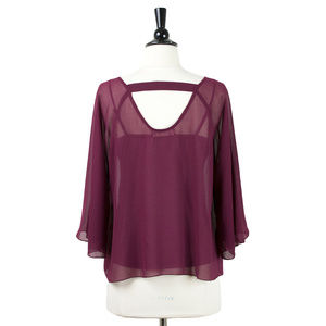 ▪️TRAFFIC PEOPLE Burgundy Semi-Sheet Chiffon Bell Sleeve Top 3/4 Sleeve …