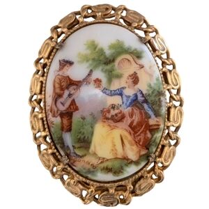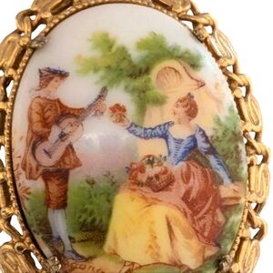 Cameo Vintage French Serenade Ornate Painted Brooch Pin