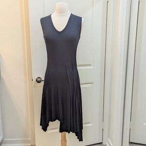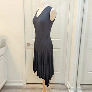 TRANSPARENTE Black Asymmetrical Short Sleeveless V-neck Slender Dress - Small
