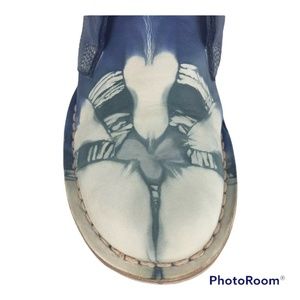 TRANS-PARENTS LEATHER TIE-DYE BLUE CREAM FLAT ROUND TOE ANKLE BOOTS Sz. 4.5