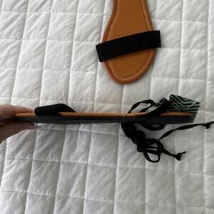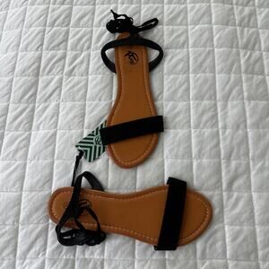 TRARY Sandals Womens 7.5 Black Strappy Ankle Wrap Up Flat Casual Beach Summer