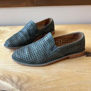 TRASK ALI PERFORATED SLIP ON LOAFERS SHOES WOMENS 8M BLUE LEATHER UPPER…