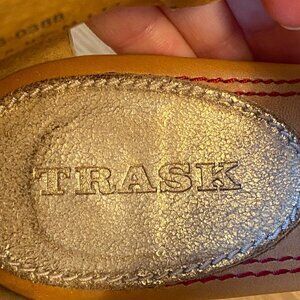 TRASK Hannah Gold Metallic Leather Huarache Look Heels Size 9.5