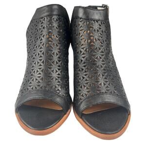 TRASK LASER CUT LEATHER SLINGBACK HEELED SANDALS IN BLACK NWOB WOMEN'S SIZE 8