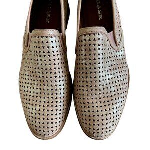 TRASK NEW Ali Leather Perforated Slip On Loafers In Metallic Pink Size 10