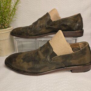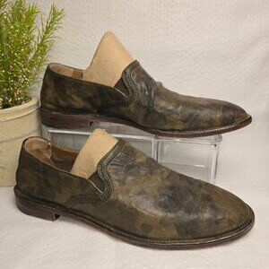 TRASKER ALI LEATHER LOAFERS TONAL GREEN CAMO PRINT SLIP ON SHOES WOMENS 8.5